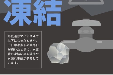 最近寒暖差が激しいですが、皆様体調はいかがでしょうか? 今週末も一気に冷え込むようですね。 そこでお気を付け頂きたいのが、ご自宅等の水道管凍結事故です。 気温-4℃以下で凍結および破裂リスクが一気に高まるようです。 前日...
